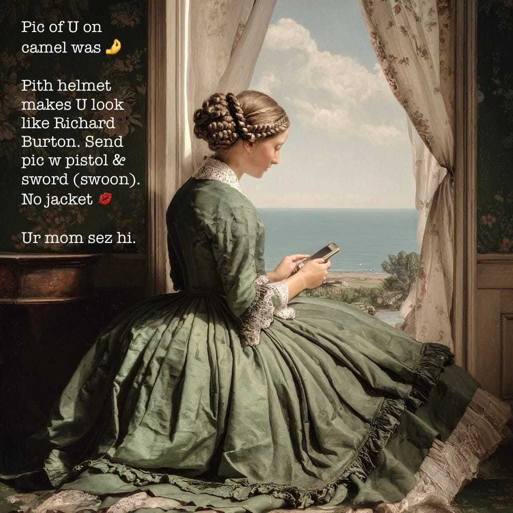Up until the late 90s geographical separation meant long-distance ($$$) phone calls and letter writing. If somebody was traveling, how would the person at home know where to send letters unless they had the other person’s itinerary? It was a challenge. Now? Shoot somebody a text. Attach a photo. Facetime them. All instantaneous. You need some in-person time and your sweetheart is several states away? That’s a few hours of flight time. On the other side of the Atlantic? Pre-air travel this meant a good week of travel at the very least. Today? A day’s travel time.