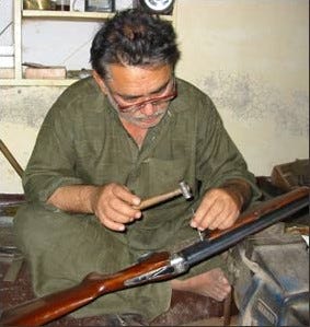‘Webley Pocket revolver in .38 S&W purchased at Bagram Airfield. Presumably a “Khyber Pass” forgery, as it is dated 1951 on the other side, though it has fake Webley trademarks. The seller apparently tried to add a “1” to the fake serial number “880” to make it look like a pre-1898, and thus legal to import to the U.S., antique pistol.’ —Matthew Vanitas. Khyber Pass Martini Pistol at RIA - via Forgottenweapons.com